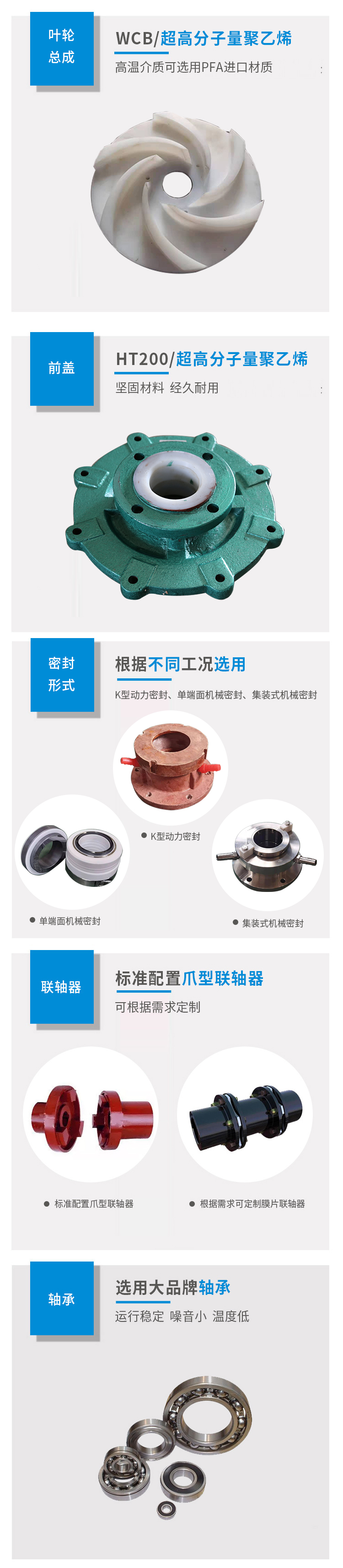 一種泵能適應各種不同的工況。如:既可以輸送酸、堿類清液或料漿,也可以輸送冶煉行業各種腐蝕性礦漿,還可以輸送硫酸行業各類稀酸、環保行業的各類污水等。
