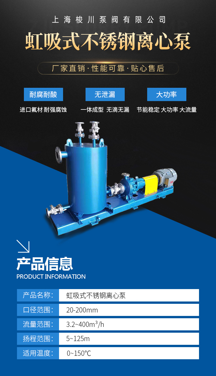 產(chǎn)品綜述: 口徑范圍:20~200mm 流量范圍:3.2~400m3/h 揚(yáng)程范圍:5-125m 適用溫度:0~150℃產(chǎn)品用途本產(chǎn)品廣泛適用于:石油化工、制酸制堿、有色金屬冶煉、汽車(chē)制造的酸洗工藝、稀土分離、農(nóng)藥、染料、醫(yī)藥、造紙、電鍍等行業(yè),適用于輸送清液或含有少量顆粒(固含量小于10%)的腐蝕性介質(zhì)。 不銹鋼離心泵廣泛適用于石油化工、酸堿、有色金屬冶煉、汽車(chē)制造酸洗工藝、稀土分離、農(nóng)藥、染料、醫(yī)藥、造紙、電鍍等行業(yè),適用于清液運(yùn)輸和含有少量顆粒(固體含量低于10%)的腐蝕性介質(zhì)。